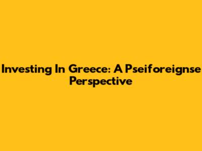 Investing In Greece: A Pseiforeignse Perspective