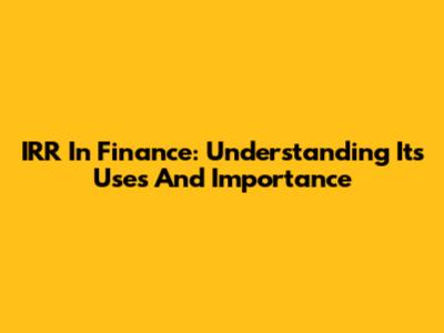 IRR In Finance: Understanding Its Uses And Importance