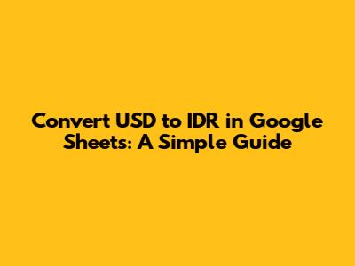 Hey there, data enthusiasts! Are you looking to convert USD to IDR (Indonesian Rupiah) directly within your Google Sheets? You've come to the right place! This guide will walk you through the process, making it super easy to stay on top of those currency conversions. We'll cover everything from the basic formula to more advanced tricks, so get ready to become a Google Sheets pro when it comes to dealing with different currencies! The beauty of using Google Sheets is that you can automate the whole thing, saving you time and effort. No more manual calculations or switching between different tools – everything you need is right there in your spreadsheet. Ready to get started? Let’s dive in!