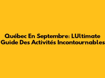 Québec En Septembre: L'Ultimate Guide Des Activités Incontournables