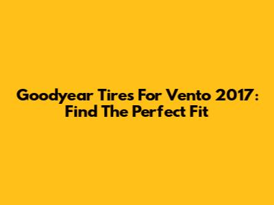 Goodyear Tires For Vento 2017: Find The Perfect Fit