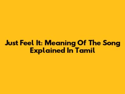 Just Feel It: Meaning Of The Song Explained In Tamil