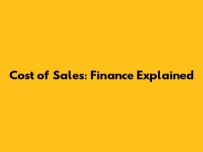 Why is Cost of Sales So Important in Finance?
