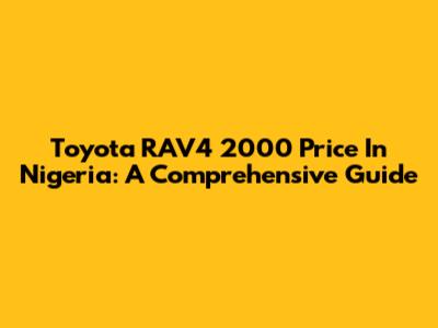 Toyota RAV4 2000 Price In Nigeria: A Comprehensive Guide