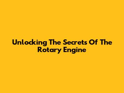 Unlocking The Secrets Of The Rotary Engine