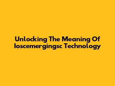 Unlocking The Meaning Of Ioscemergingsc Technology