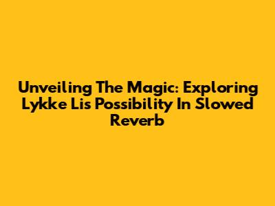 Unveiling The Magic: Exploring Lykke Li's 'Possibility' In Slowed Reverb