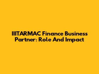 IIITARMAC Finance Business Partner: Role And Impact
