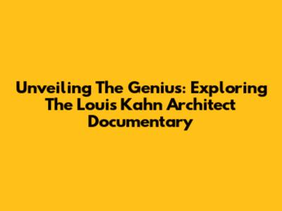 Unveiling The Genius: Exploring The Louis Kahn Architect Documentary