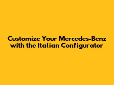 Unveiling the Mercedes-Benz Italia Configurator: What's the Hype?