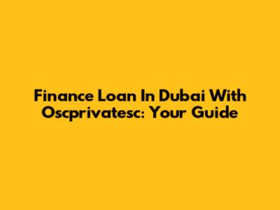 Finance Loan In Dubai With Oscprivatesc: Your Guide