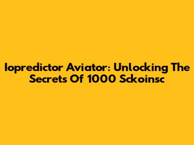 Iopredictor Aviator: Unlocking The Secrets Of 1000 Sckoinsc