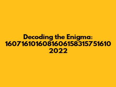 Alright, guys, let's dive straight into this seemingly cryptic sequence: 1607161016081606158315751610 2022. At first glance, it looks like a random jumble of numbers, right? But, like any good mystery, there's likely a method to the madness. We need to break this down, analyze its components, and see if we can unearth any hidden meanings or patterns. What could this possibly represent? Is it a date, a code, or something entirely different? The possibilities are endless, but let's start by exploring the most obvious interpretations and then delve into more speculative theories. Remember, the key to cracking any code is persistence and a willingness to explore every angle. So, buckle up, grab your detective hats, and let's get started on this numerical adventure! We'll try to dissect it piece by piece and maybe, just maybe, we'll stumble upon something truly fascinating. Whether it’s a historical reference, a product code, or something uniquely personal, figuring it out promises to be an interesting ride. Remember folks, sometimes the most obscure things hide the most interesting stories.