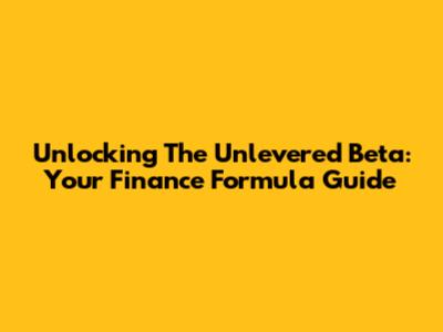 Unlocking The Unlevered Beta: Your Finance Formula Guide