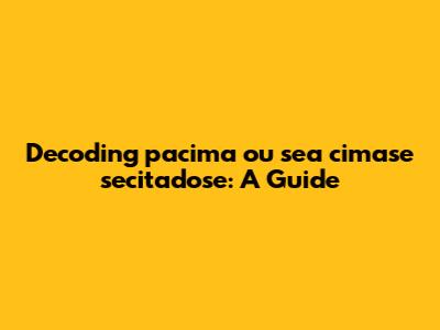Without more context, it's tough to pinpoint the exact meaning of "pacima ou sea cimase secitadose." However, let's brainstorm some potential interpretations based on the possibilities we've discussed: