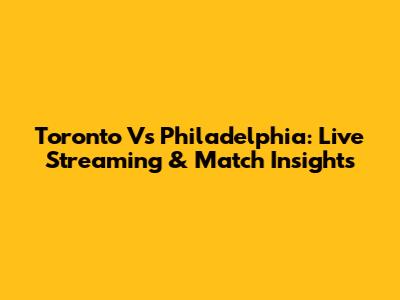 Toronto Vs Philadelphia: Live Streaming & Match Insights