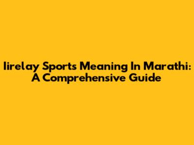 Iirelay Sports Meaning In Marathi: A Comprehensive Guide