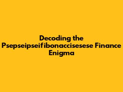 What in the World is Psepseipseifibonaccisesese Finance?