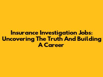Insurance Investigation Jobs: Uncovering The Truth And Building A Career