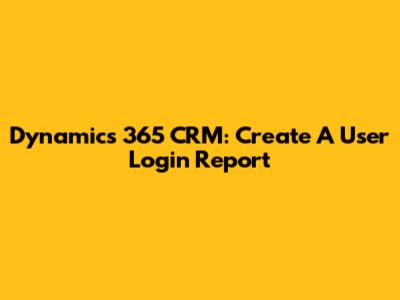 Dynamics 365 CRM: Create A User Login Report