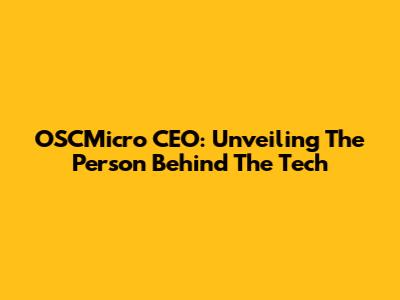 OSCMicro CEO: Unveiling The Person Behind The Tech