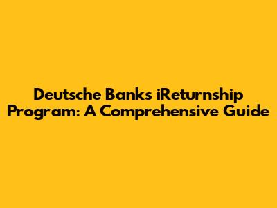 Hey guys! Let's dive into something super cool – the Deutsche Bank iReturnship program! If you're looking to jump back into the world of finance after taking some time off, whether it's for family, travel, or anything else, this program is designed specifically for you. We'll break down everything you need to know, from what the program is all about to how to apply and what you can expect. Get ready to learn how Deutsche Bank is paving the way for a smoother return to work for experienced professionals! So, keep reading to learn all about the Deutsche Bank iReturnship program.