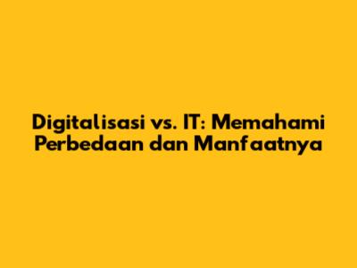 Meskipun digitalisasi dan IT seringkali saling terkait, ada perbedaan mendasar antara keduanya. Digitalisasi adalah tentang transformasi bisnis, sementara IT adalah tentang menyediakan infrastruktur dan teknologi yang memungkinkan transformasi tersebut terjadi. Perbedaan utama antara digitalisasi dan IT meliputi:
