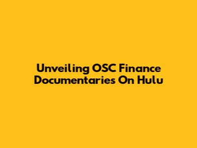 Unveiling OSC Finance Documentaries On Hulu
