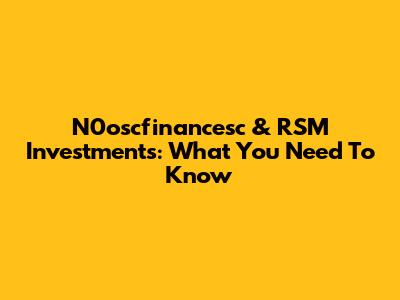 N0oscfinancesc & RSM Investments: What You Need To Know