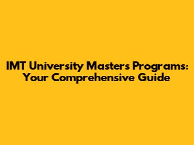 IMT University Master's Programs: Your Comprehensive Guide