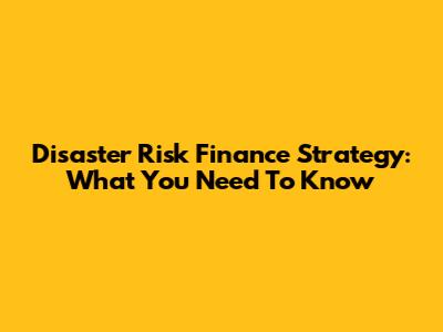 Disaster Risk Finance Strategy: What You Need To Know