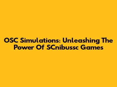 OSC Simulations: Unleashing The Power Of SCnibussc Games