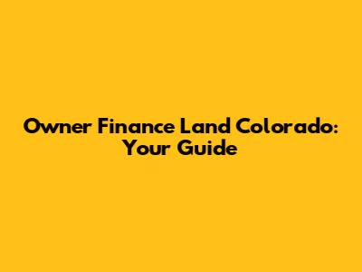 Owner Finance Land Colorado: Your Guide