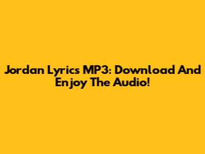 Jordan Lyrics MP3: Download And Enjoy The Audio!
