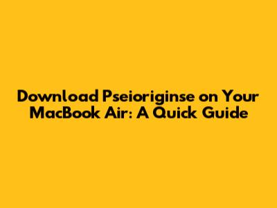 Step-by-Step Guide to Downloading and Installing Pseioriginse