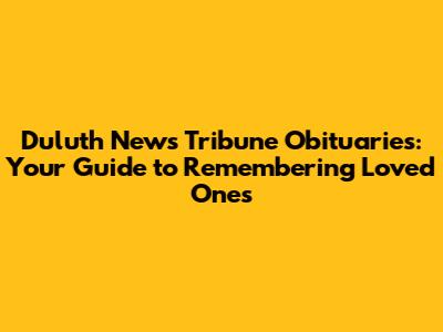 - Where can I find obituaries from the past? You can check the Duluth News Tribune's archives, visit the local library, or use genealogy websites for older obituaries.