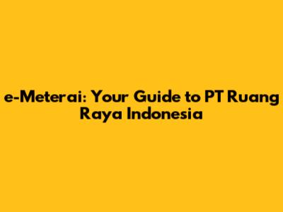 Hey guys! Ever heard of e-Meterai? If you're doing any official paperwork in Indonesia these days, it's something you definitely need to know about. And if you're dealing with it, chances are you'll come across PT Ruang Raya Indonesia, one of the key players. In this guide, we'll dive deep into everything you need to know about e-Meterai, especially in the context of PT Ruang Raya Indonesia and how it works, what it is, and why it's important. Trust me, it’s not as complicated as it sounds, and knowing the ins and outs can save you a whole lot of headaches. Let’s get started, shall we?