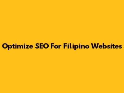 Optimize SEO For Filipino Websites
