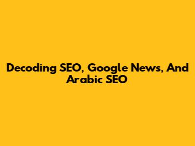 Decoding SEO, Google News, And Arabic SEO