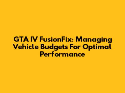 GTA IV FusionFix: Managing Vehicle Budgets For Optimal Performance