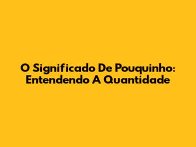 O Significado De Pouquinho: Entendendo A Quantidade