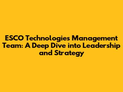 Hey guys! Let's dive deep into the world of ESCO Technologies and, more specifically, the folks running the show – the management team! We're talking about the individuals who steer the ship, make the big decisions, and ultimately shape the company's future. This isn't just about names on an org chart; it's about understanding their backgrounds, their strategies, and how they contribute to ESCO's overall success. So, grab a coffee (or your favorite beverage), and let's explore the ins and outs of ESCO Technologies' leadership.