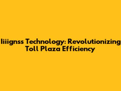 Iiiignss Technology: Revolutionizing Toll Plaza Efficiency