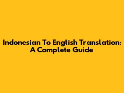 Indonesian To English Translation: A Complete Guide