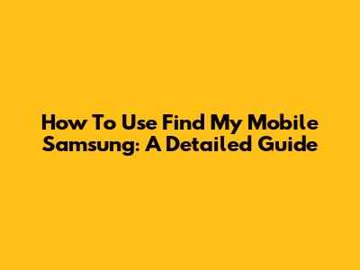 How To Use Find My Mobile Samsung: A Detailed Guide