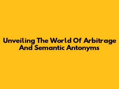 Unveiling The World Of Arbitrage And Semantic Antonyms