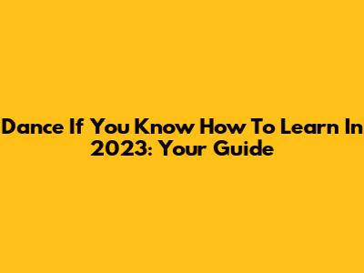 Dance If You Know How To Learn In 2023: Your Guide