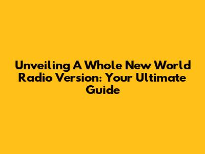 Unveiling 'A Whole New World' Radio Version: Your Ultimate Guide
