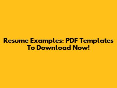 Resume Examples: PDF Templates To Download Now!