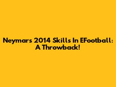 Neymar's 2014 Skills In EFootball: A Throwback!